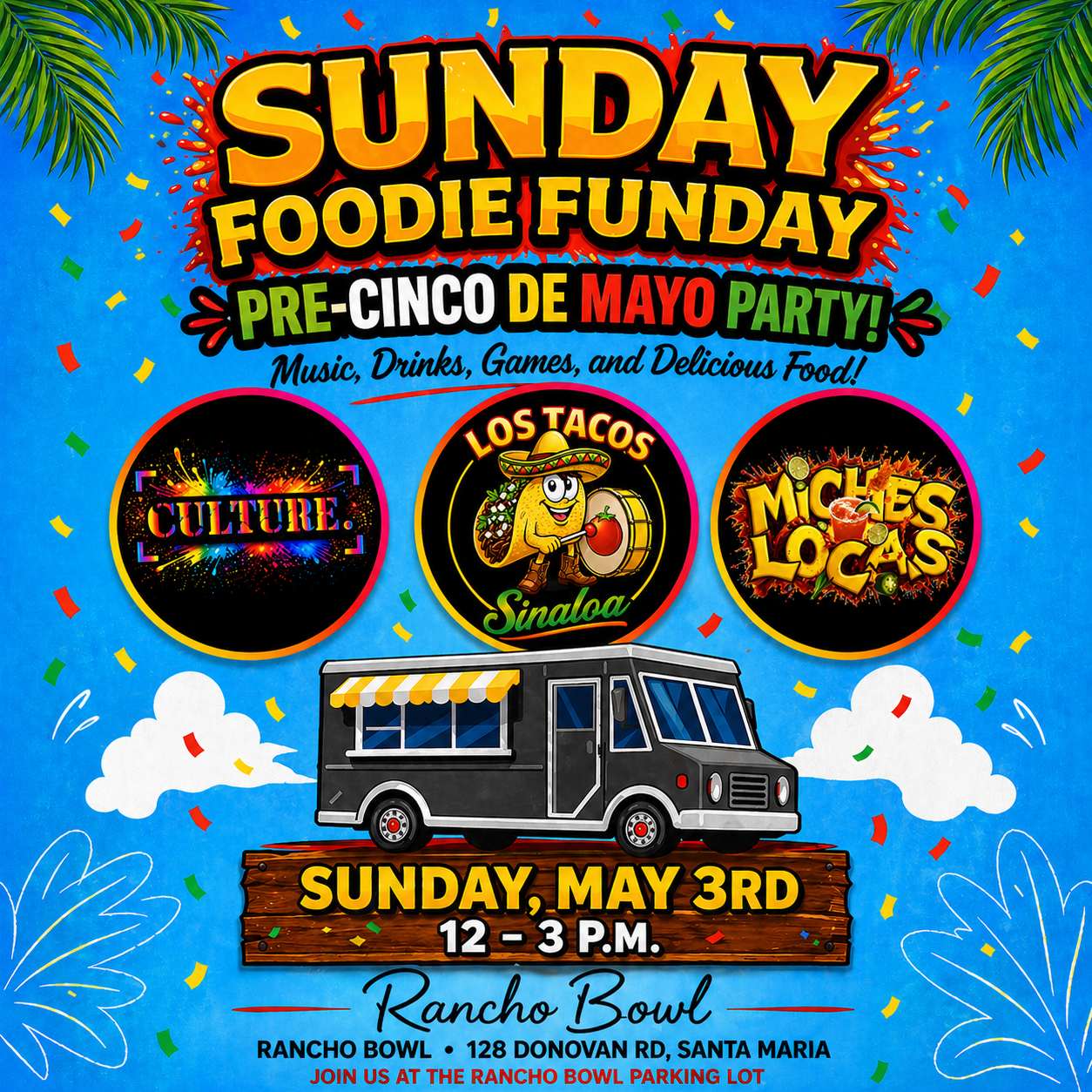 It's baaack! SUNDAY FOODIE FUNDAY is this Sunday from 12-3pm. Enjoy delicious food from Big Jaykes, Michas Locas and culture.805 along with music and drinks. ... See MoreSee Less